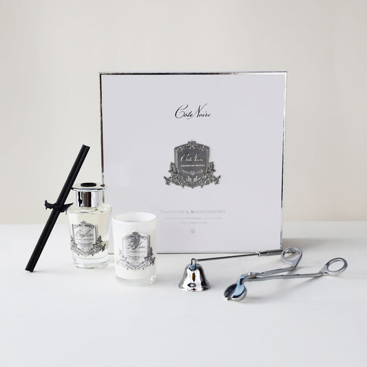 Luxury Gift set with Silver candle, Snuffer, Wick trimmer & Diffuser-Silve Badging