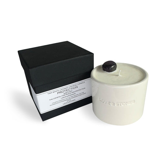 Calming - Amethyst And Crystal Quartz Infused Scented Tiny White Candle