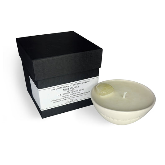 Abundance- Mini Crystal Candle Citrine Lemon And Eucalyptus