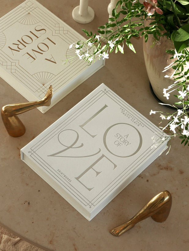 Make your wedding day memories last forever, or bring the perfect gift to the newlyweds with our beautiful photo album A Story of Love, featuring a white cloth cover with silver foiled text.