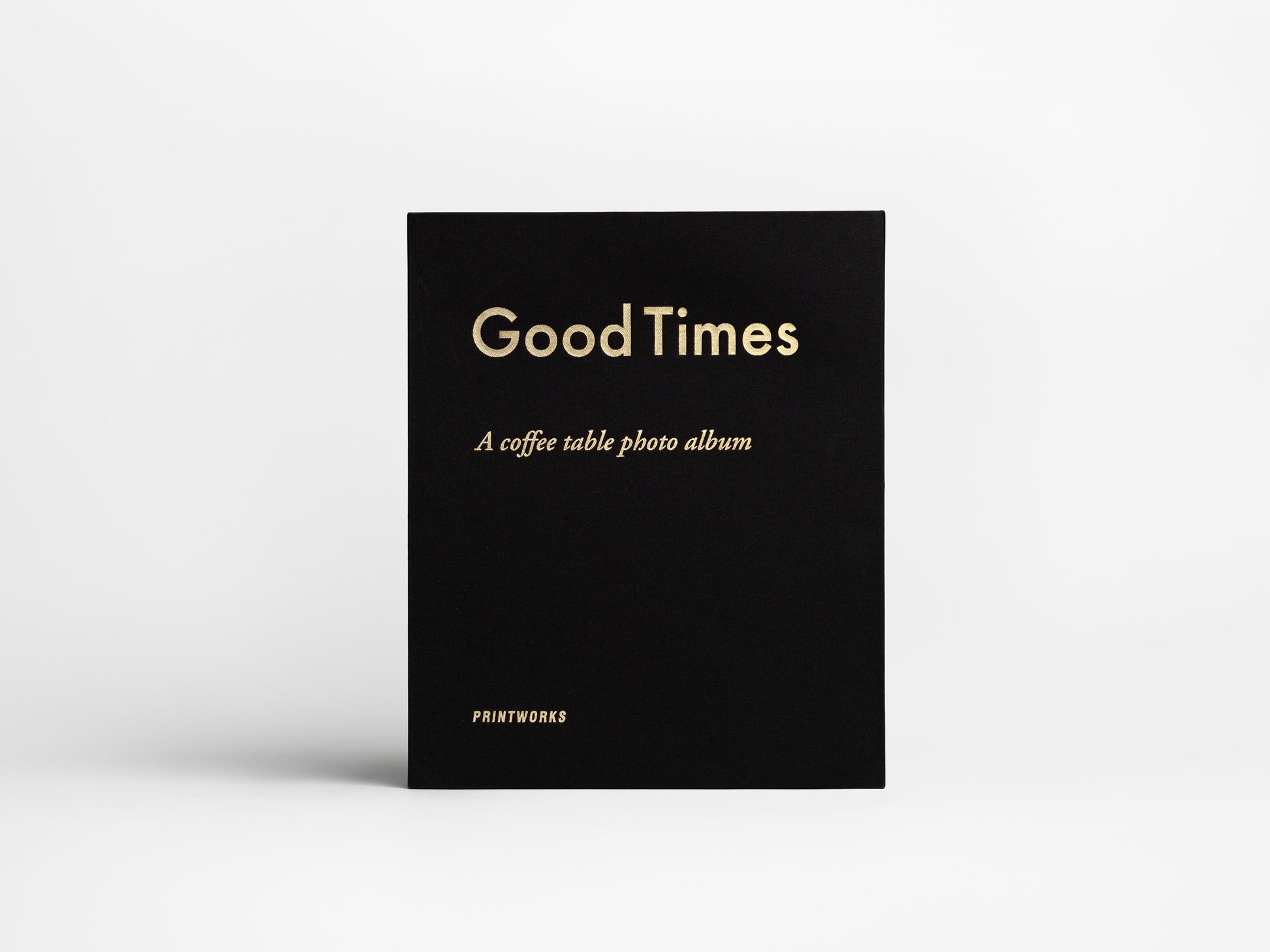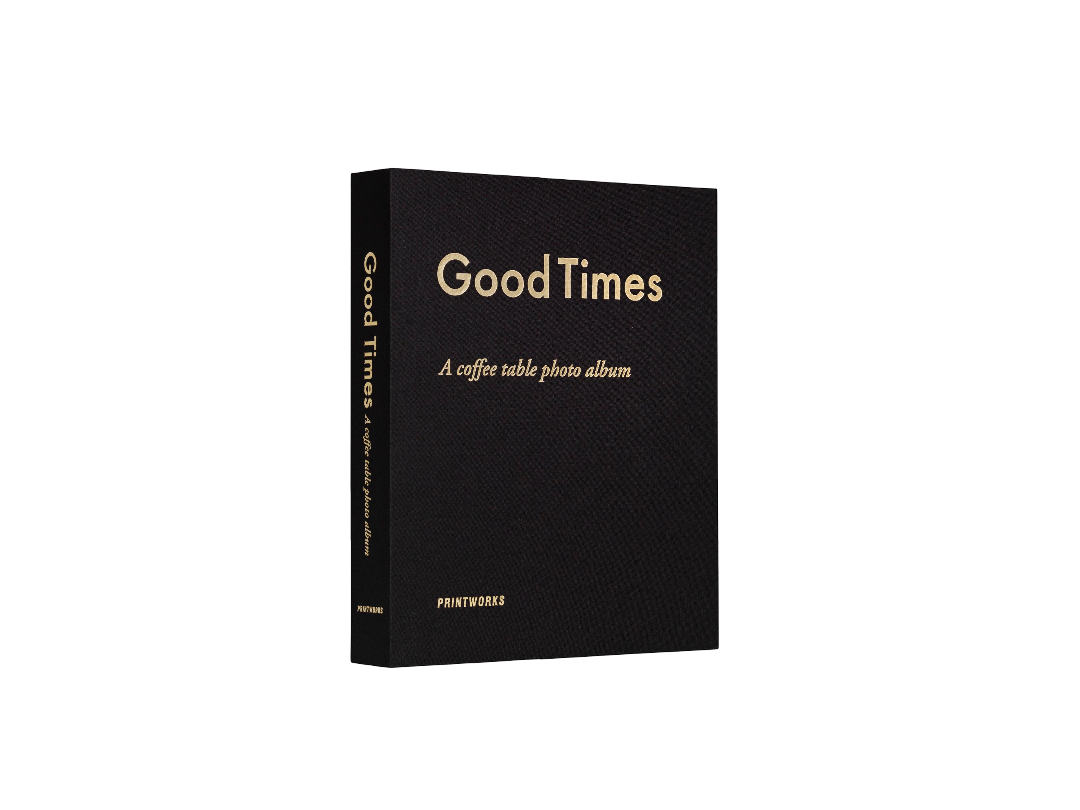 Discover our Good Times coffee table photo album, featuring an elegant black cloth cover with gold foiled text.