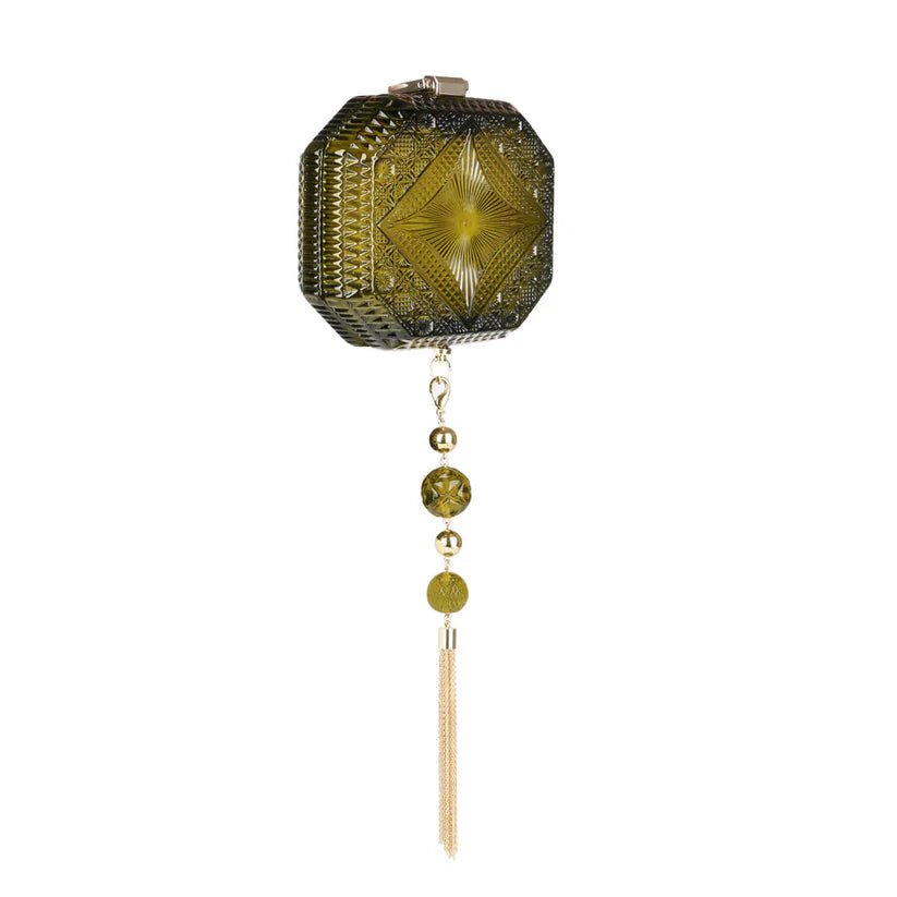 Hand Carved Octagon Clutch Olive