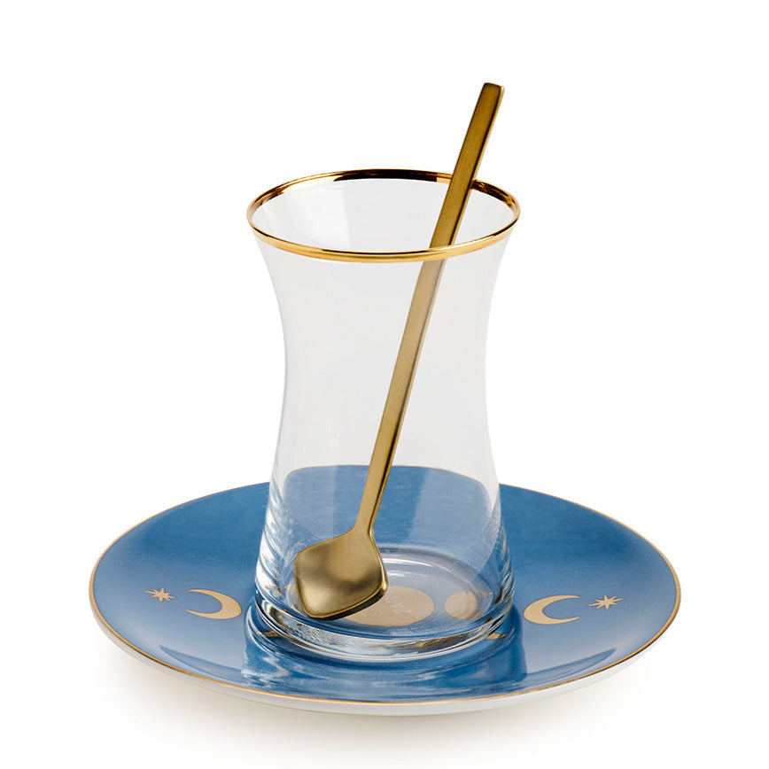 Experience an exquisite tea-drinking ritual with our “Hilal ” Crystal Tea Cups. Crafted from beautiful crystal, these cups showcase captivating lunar phase designs in a soothing shade of blue, inspired by the Arabic word “Hilal,” meaning moon.
