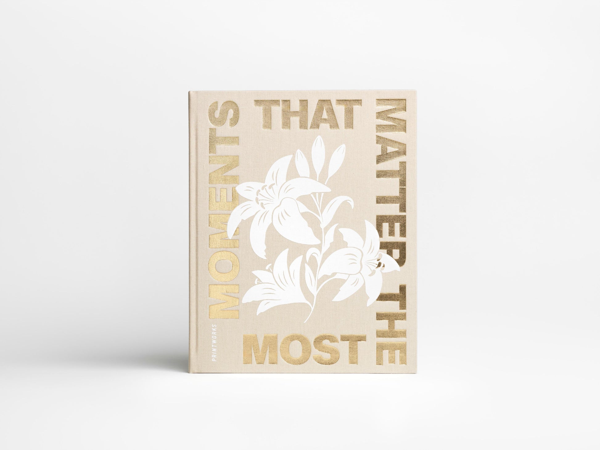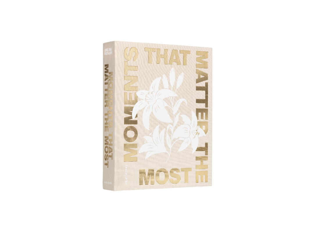 Discover our bestselling Moments that Matter the Most coffee table photo album, featuring an elegant sky blue cloth cover with gold foiled text.