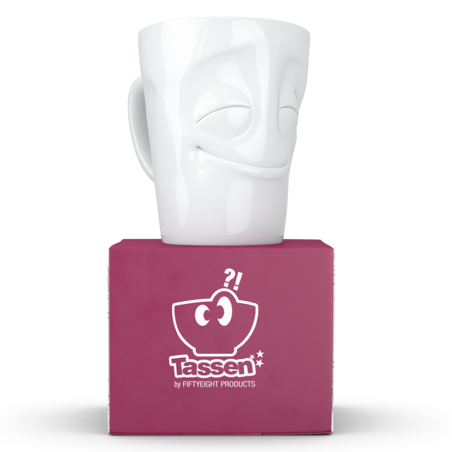 Our "Cheery" Mug with handle in white. "Cheery" Mug is bound to bring big smiles to the breakfast table, regardless of the season or weather.