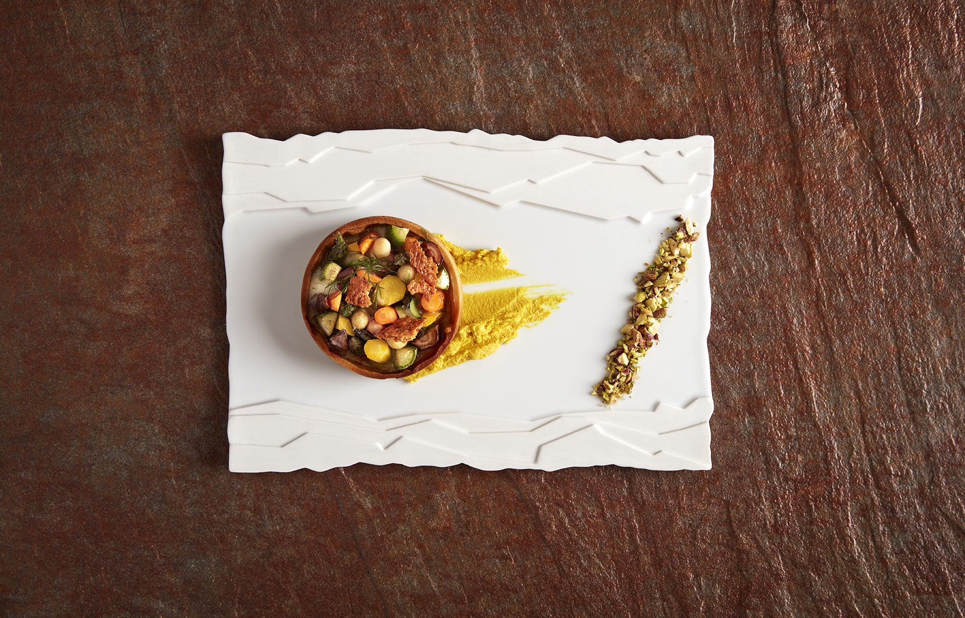 Comprising plates, bowls, podiums and creamer, Terra will provide you with a unique gastronomic experience, thus elevating platting to its maximum exponent.While using the best raw materials and the passionate hands of those who know how to work porcelain, Terra collection is an ode to our “All Senses Matter” motto, thus bringing the art of sculpture into your table, while revolutionizing design standards, across hostelry markets and world-class restaurants.