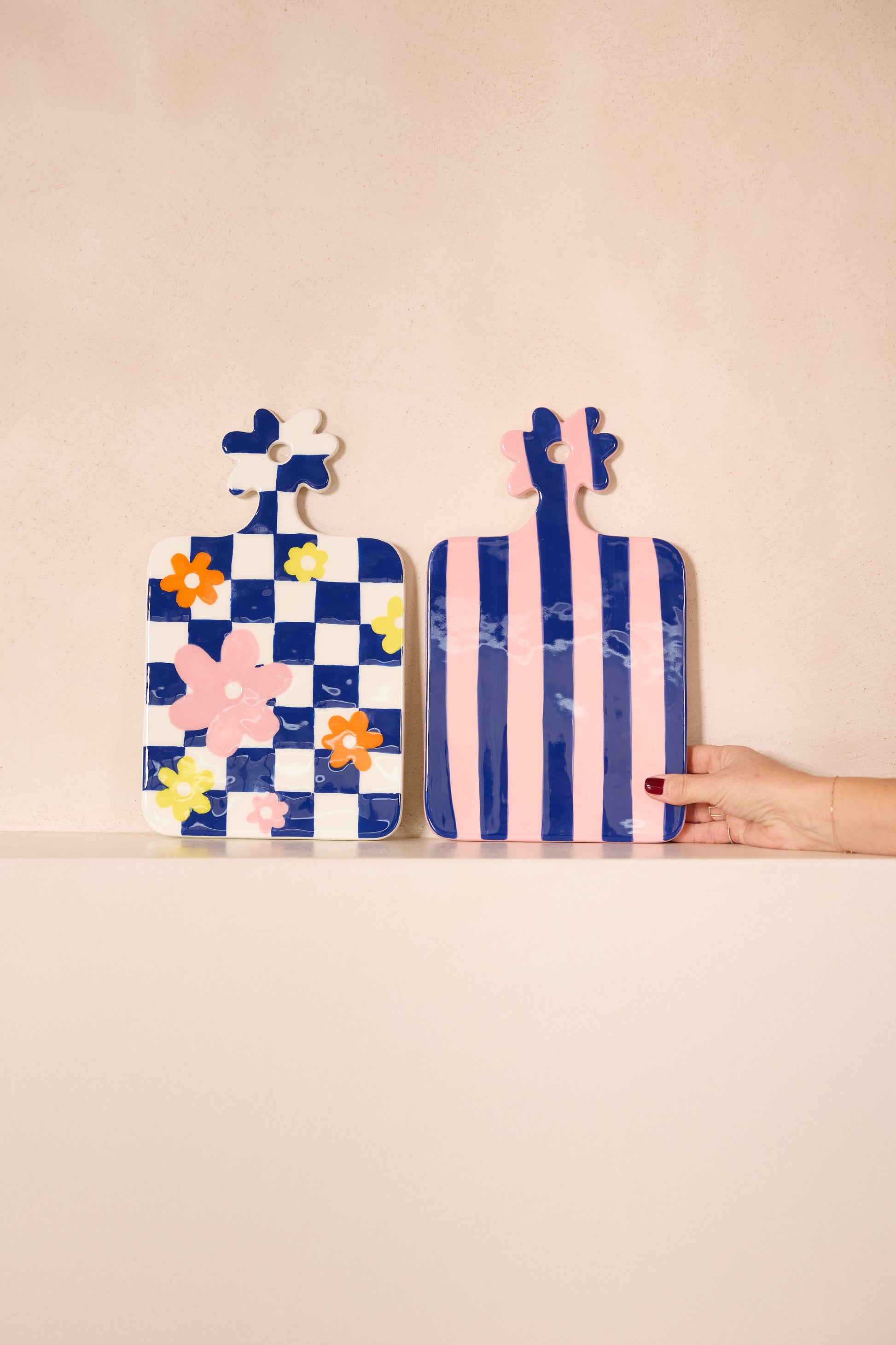 Add a vibrant twist to your home with the ceramic Rogelio tray from Qué Rico. Showcasing the colourful Petal Paradise pattern, this tray is designed in Belgium and inspired by Spanish aesthetics. With its flowery pattern and checkered colour combination of white and blue underneath, this handcrafted tray is a true eye-catcher in any interior. Whether used for serving or as a decorative piece, it brings a burst of Spanish sunshine and positive vibes into your home. As it is hand-painted, every piece is unique! Gift packaging included.