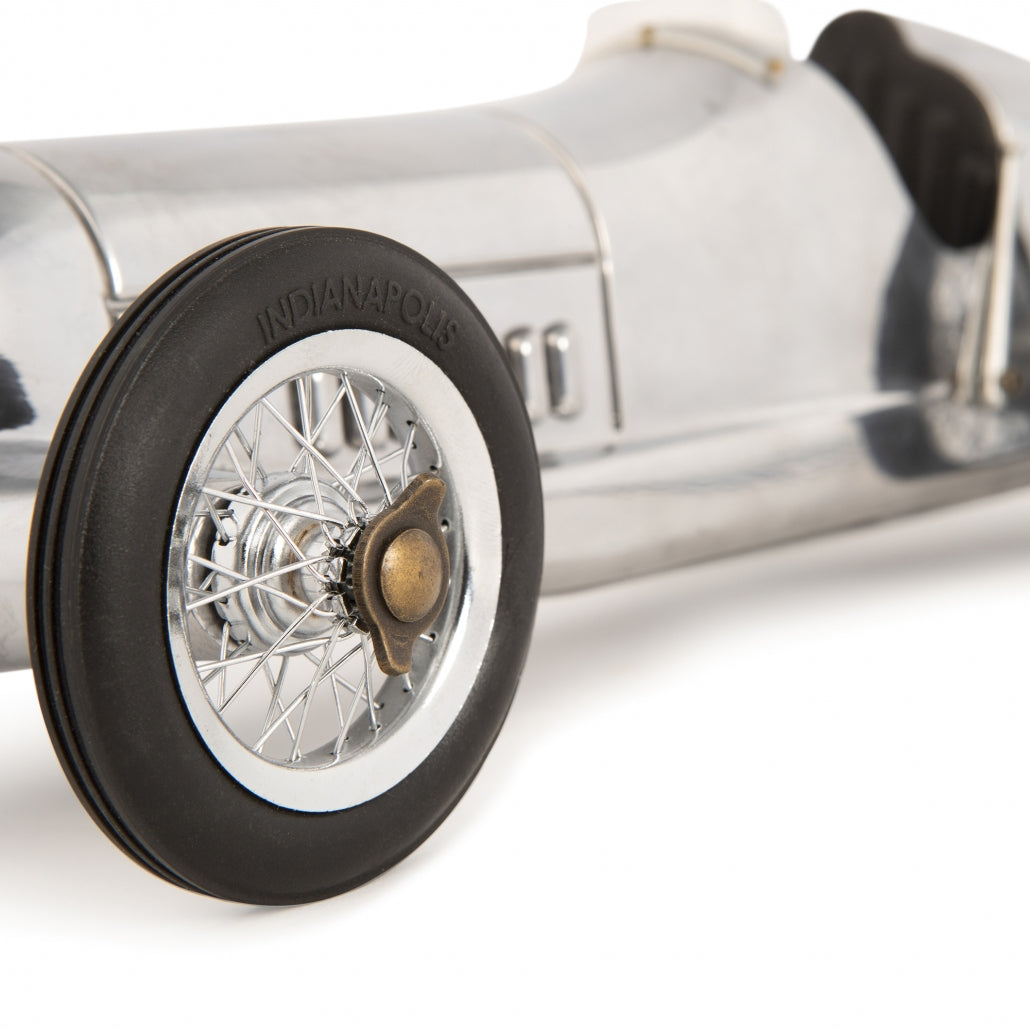 In 1934, the international motor sport governing body specified a maximum weight for Grand Prix racing cars of 750 kg, excluding tyres and fuel. The Germans decided to reduce weight by removing the lead-based paint which denoted its cars’ traditional white livery, exposing distinctive shining aluminium. Victory by one of these lead to the nickname Silver Arrow. Their successors, which were built on the same chassis, continued to race successfully at the Indy 500 after the war.