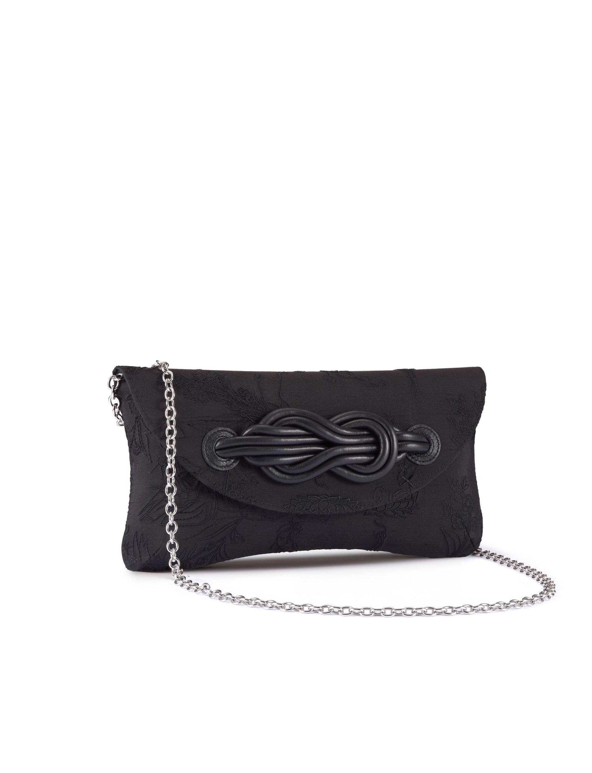 Elevate your evening ensemble with the Shanghai Tang Silk Knot Clutch, a statement piece that blends tradition with modern sophistication. Crafted from luxurious silk, this elegant Black clutch features a signature knot detail, symbolizing unity and grace. Compact yet stylish, it’s perfect for carrying your essentials in style—ideal for formal events, dinners, and special occasions.