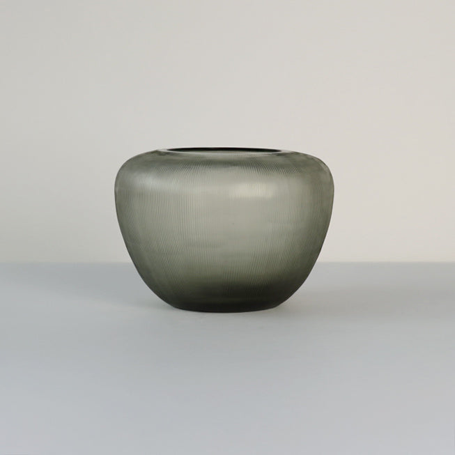 Crafted in sleek glass with a refined steel grey finish, this vase features delicate vertical line cuts that add subtle texture and depth. Its minimalist silhouette complements modern interiors, whether styled with florals or displayed as a standalone accent.