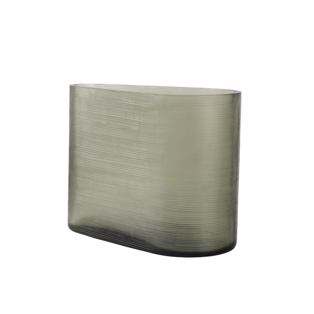 Crafted in sleek glass with a refined steel grey finish, this vase features delicate vertical line cuts that add subtle texture and depth. Its minimalist silhouette complements modern interiors, whether styled with florals or displayed as a standalone accent.