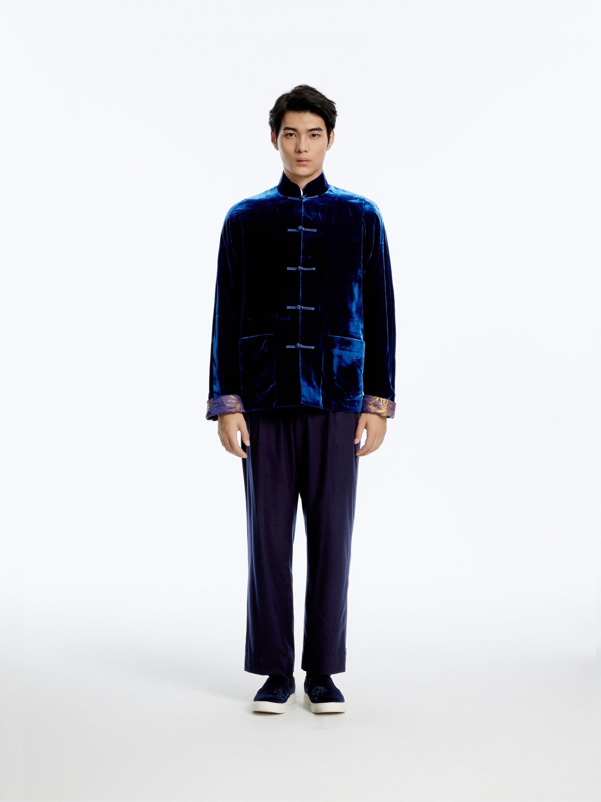 Velvet Tang Jacket With Dragon Jacquard Silk Lining Navy