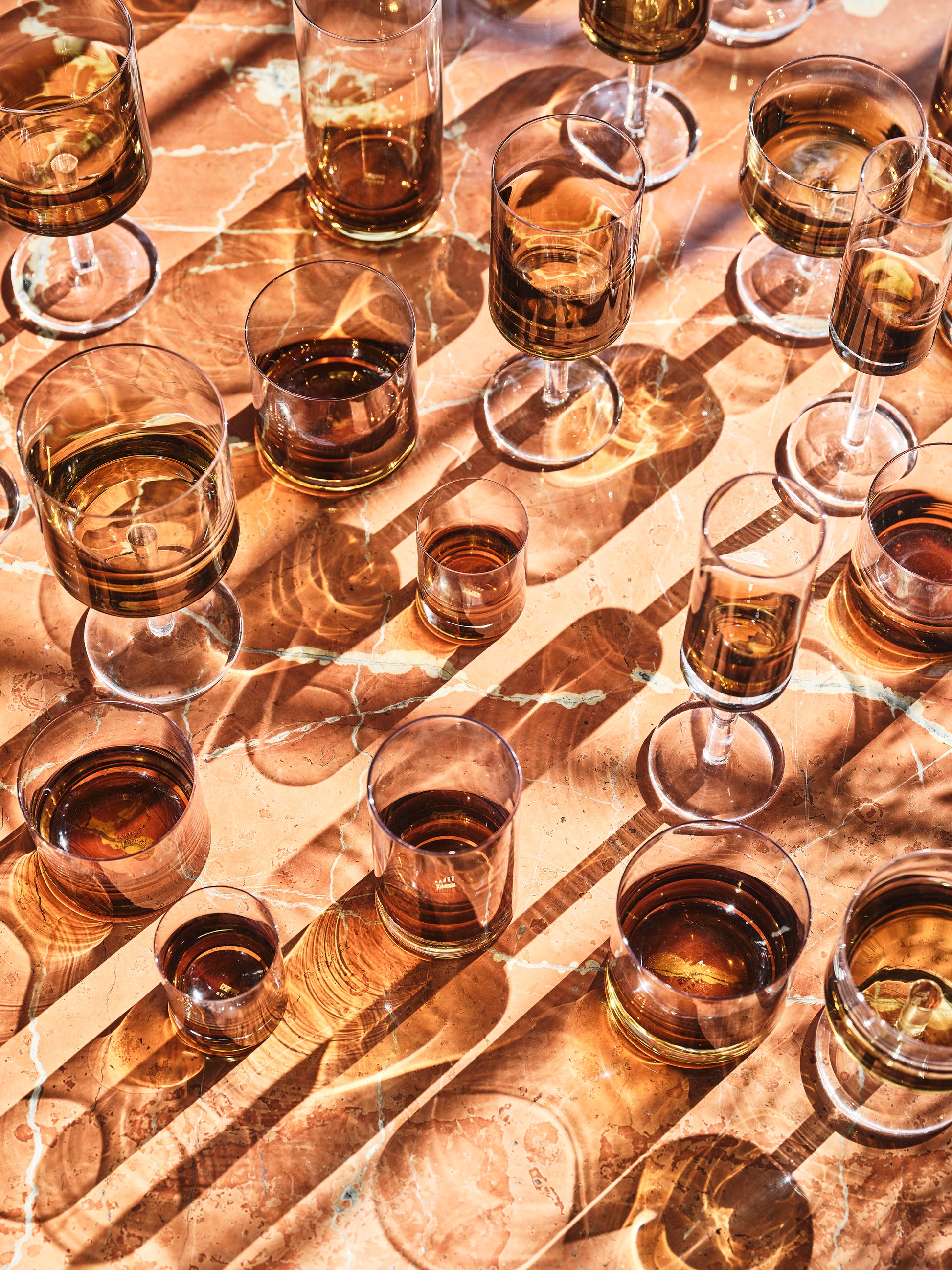 Discover the refined charm of the 'Zuma' Champagne glass from the exclusive Kelly Wearstler collection. With an amber tone obtained by a process of three layers of glass, this glass evokes the vintage atmosphere of antique glassware. The unique colour gradient is an elegant contrast with the thick glass base and streamlined shape.